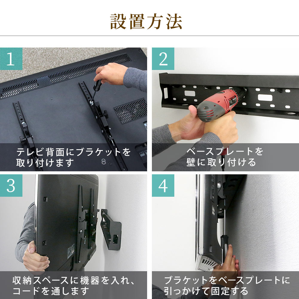 テレビの設置条件と異なる設置による事故・故障等の保証はございませんので、施工前にテレビ、及び商品の説明書をよくご確認ください。
