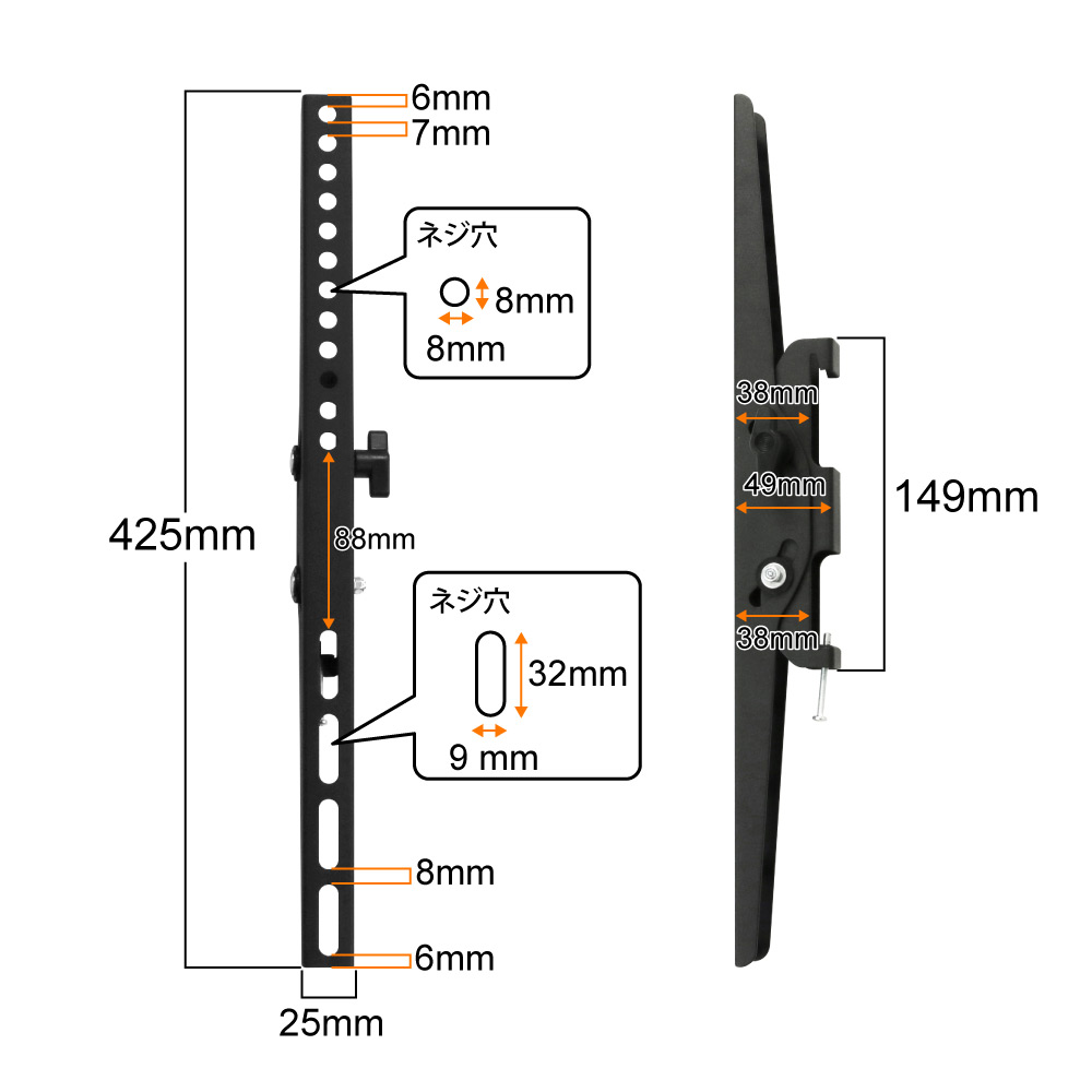 こちらのテレビ金具は、金具の適応範囲内であればどんなネジ穴間隔にも対応します。
