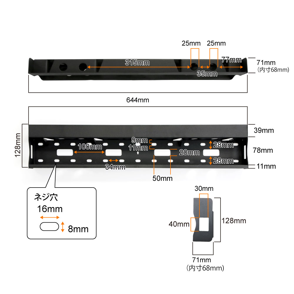 - 万全の耐荷重75kg!強度と頑丈さを誇るスリム金具