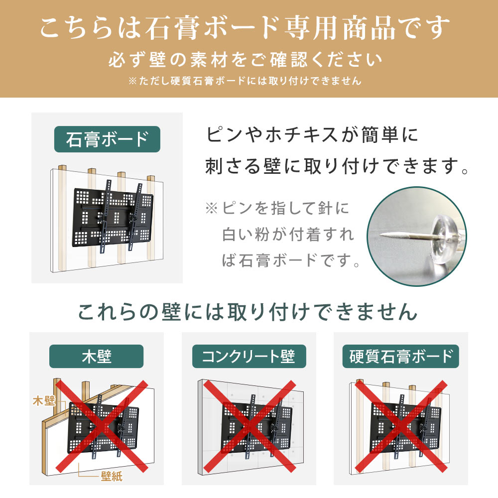 ホチキス止めで中型テレビの壁掛け設置に 石膏ボード専用品